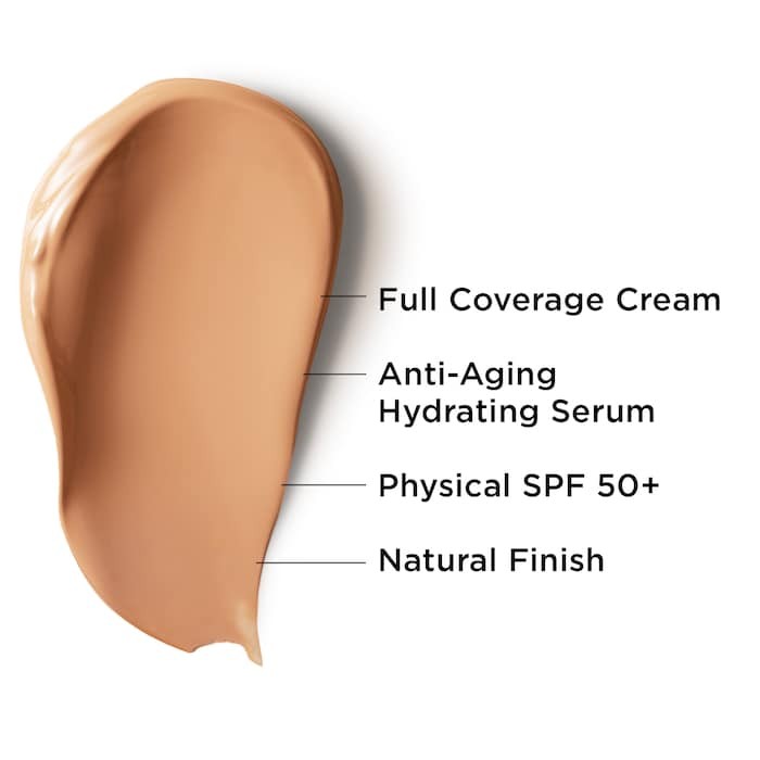 كريم مصحح للألوان ذو تغطية كاملة وحاصل على جوائز، مع عناية بالبشرة مضادة للشيخوخة وحماية من الشمس SPF 50+.