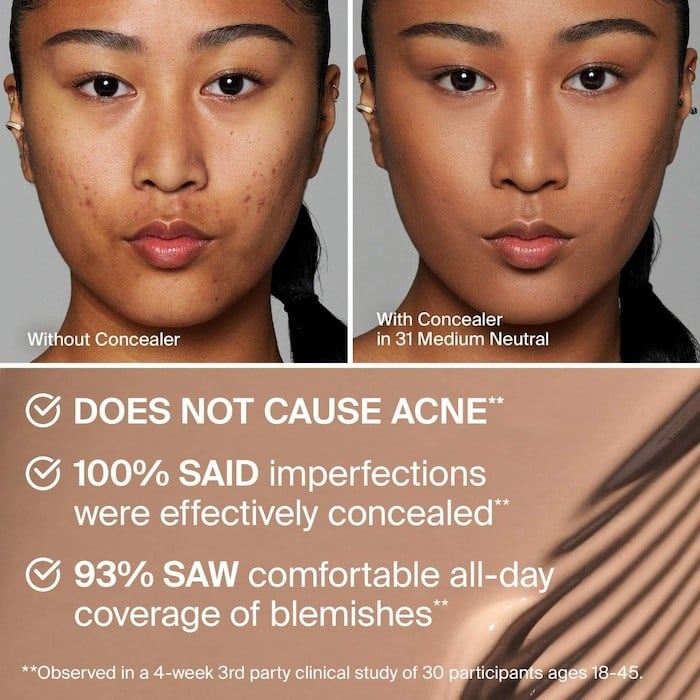 ما هو: خافي عيوب يدوم طويلاً ولا يسبب انسداد المسامات، يعمل على إخفاء العيوب وتفتيحها وإخفائها بشكل واضح مع تغطية متوسطة وقابلة للبناء وتزيل الانتفاخات بعد أسبوعين من الاستخدام اليومي.