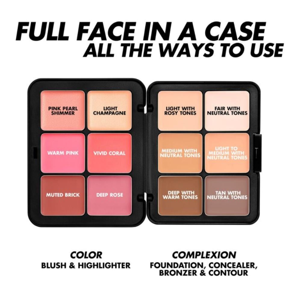 سوف تجد في باليت الوجه هذه: 6 ظلال كريم أساس و 6 ظلال أحمر خدود بلمسة نهائية طبيعية للغاية.