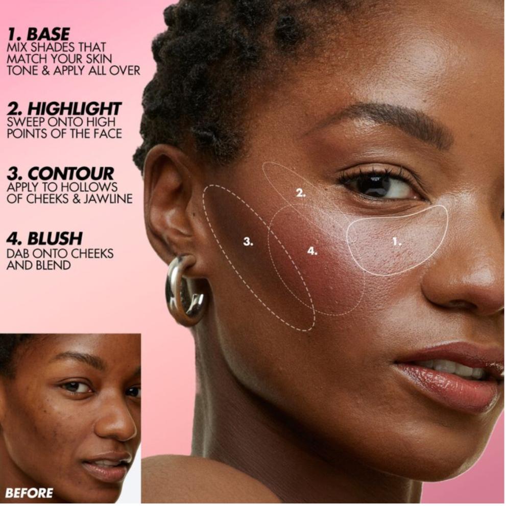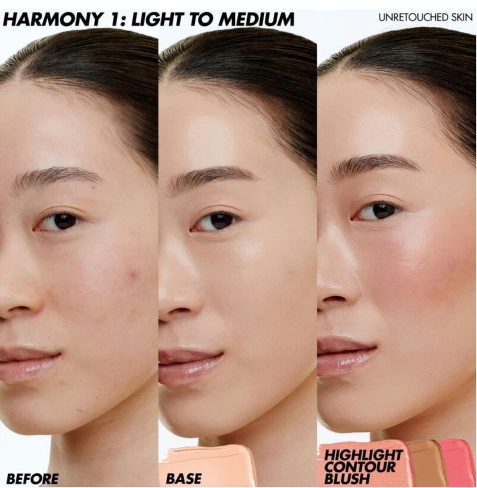 باستخدام هذه الباليت، يمكنك توحيد ونحت بشرتك وتلوين خدودك.