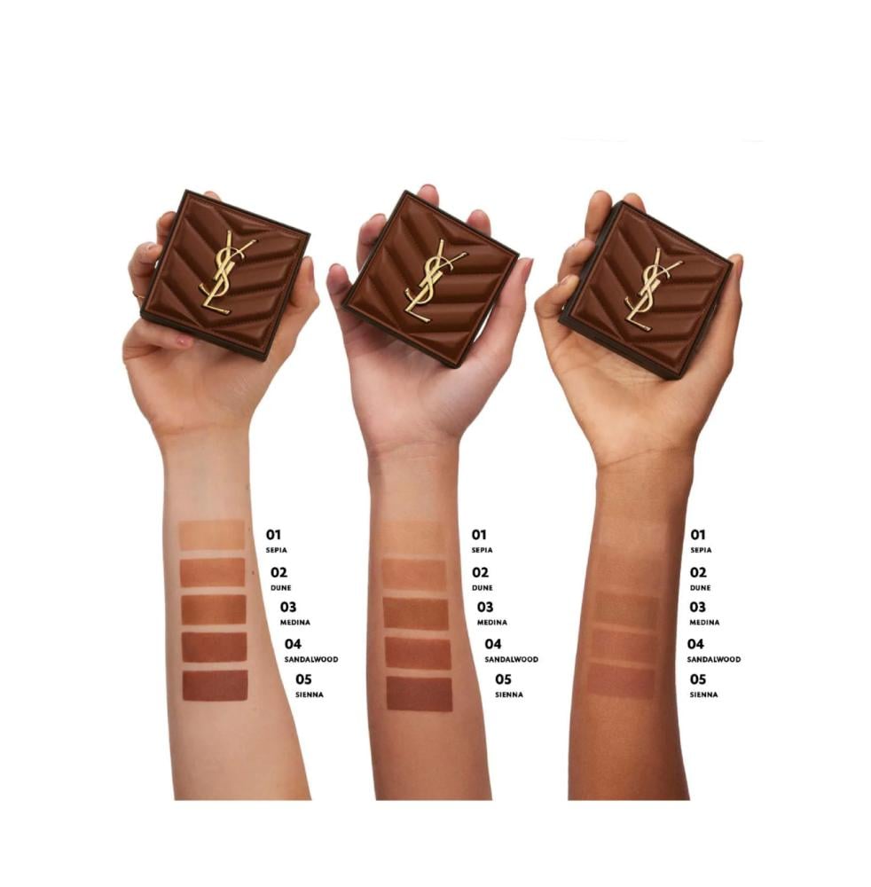 ما تحتاجين معرفته أيضًا: هذا البرونزر، الذي يسمح بمرور الهواء، وقابل للبناء، وناعم كالزبدة، يمتزج بسلاسة على البشرة، ويتركها لمعانًا طبيعيًا ولمعانًا خفيفًا. لا يتلاشى أو يتغير لونه. مُعزز بحمض الهيالورونيك والنياسيناميد، هذا البرونزر المُحب للبشرة لا يُسبب انسداد المسام وخالٍ من العطور. متوفر بخمسة ألوان مُناسبة للبشرة.